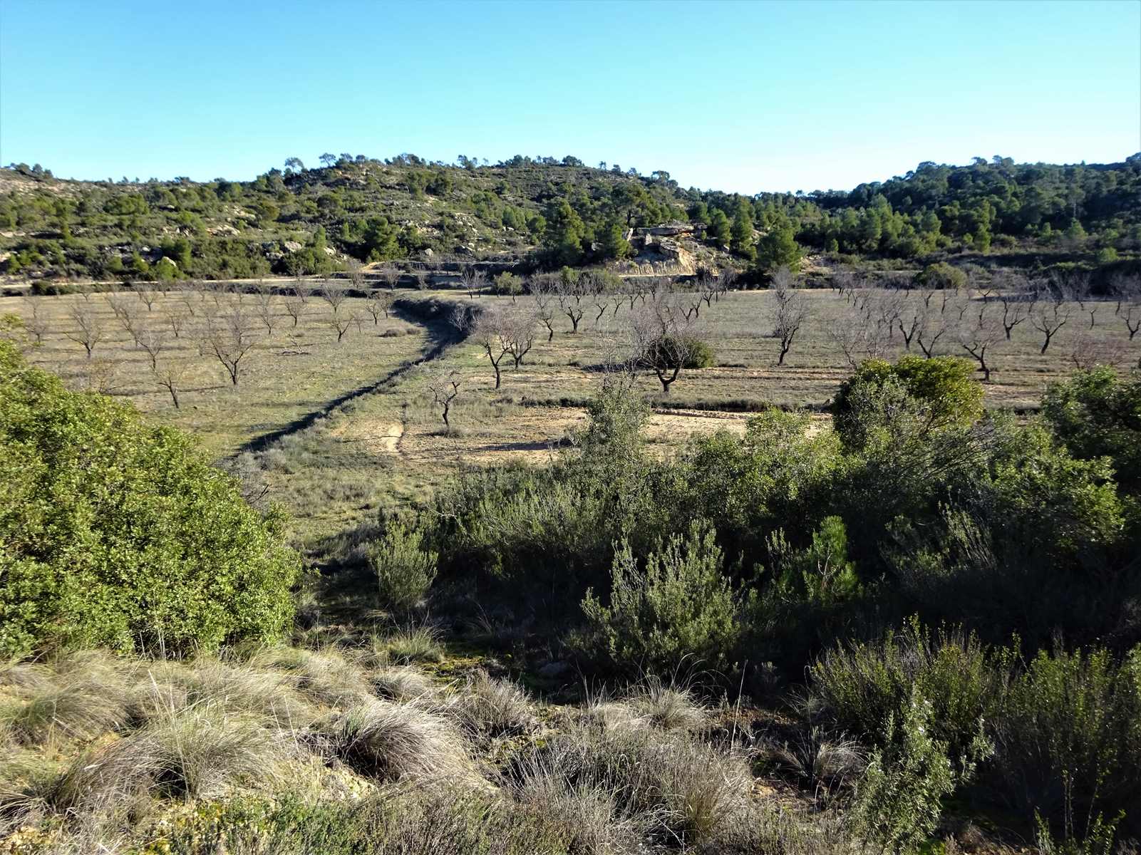 Finca in Fabara with a total area of 100.900 (10.90 hectares). The finca is located about 11 kilometers from the village and 4 kilometers from the asphalted road. Almond trees grow on a piece of 78.400 m2 and nothing has been planted yet on the remaining area of 22.500 m2. There is a mas in ruins and a small mas, both could be completely renovated. Part of the finca is located in the valley and there are two ¨barrancos¨, which are pieces of land surrounded by a nature, consisting of terraces. It is a calm and quiet location with lots of privacy. And from different points there is a beautiful view. The finca is easily accessible.